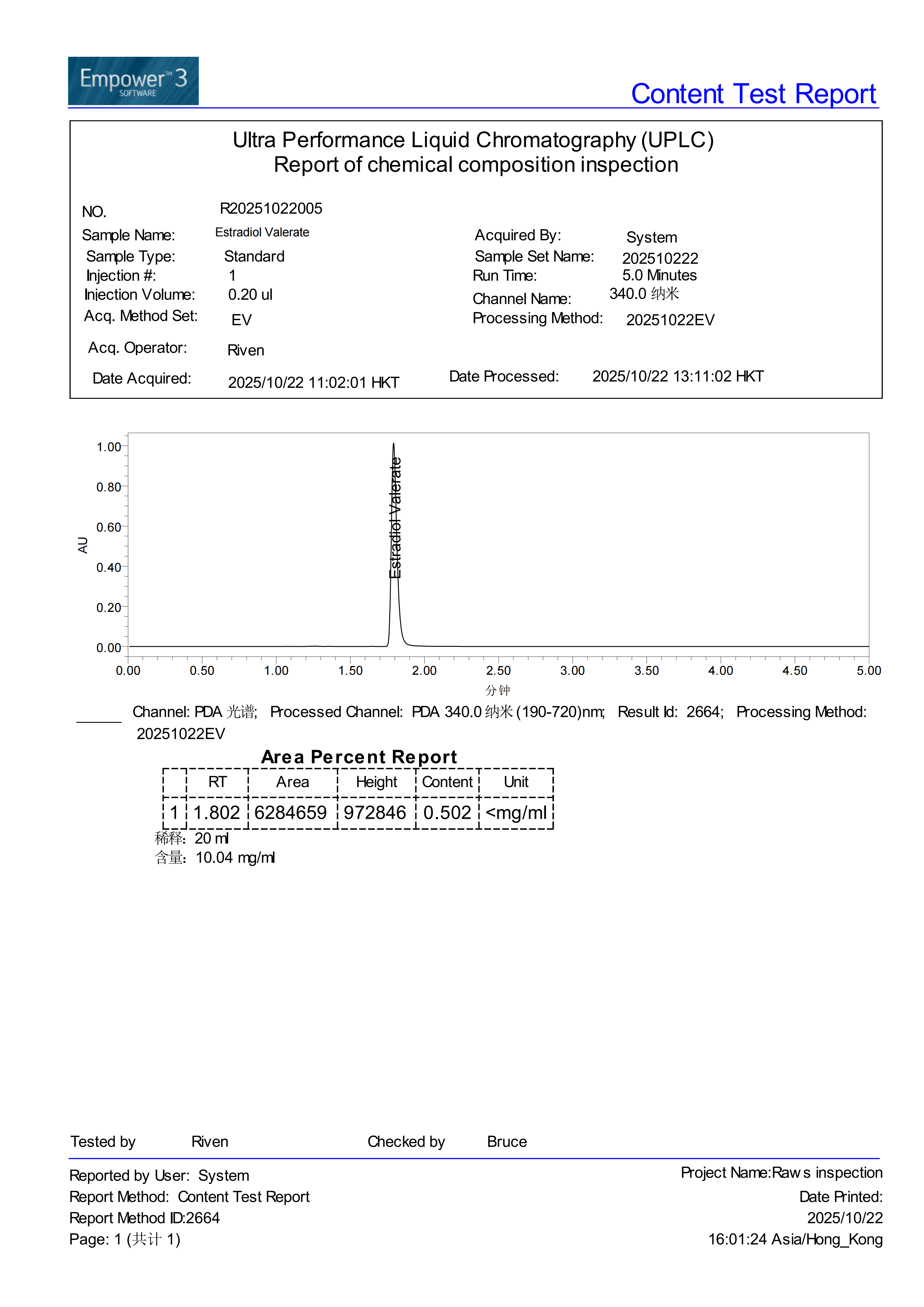 20ml Estradiol Valerate (EV,Ediol V) 10mg/ml
